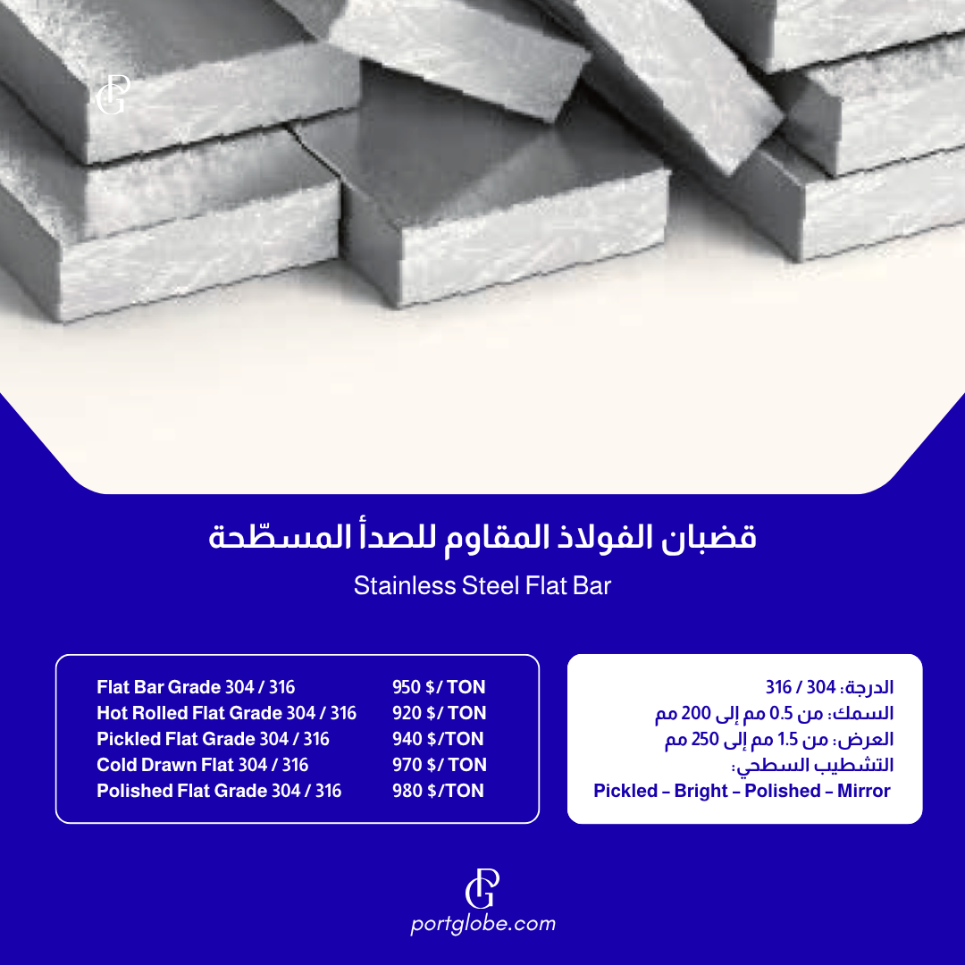 🔹 2️⃣ القضبان المسطّحة – Stainless Steel Flat Bar
