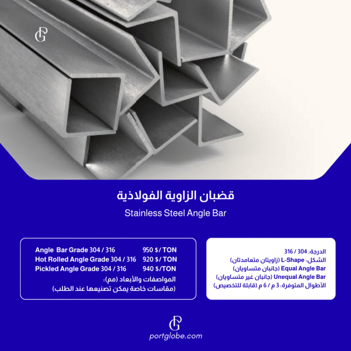 🔹 4️⃣ القضبان الزاوية – Stainless Steel Angle Bar