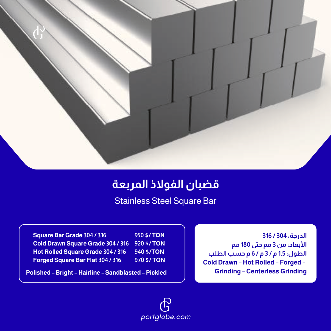 🔹 3️⃣ القضبان المربعة – Stainless Steel Square Bar