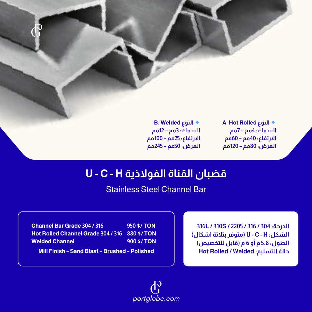 🔹 5️⃣ قضبان القناة الفولاذية – Stainless Steel Channel Bar